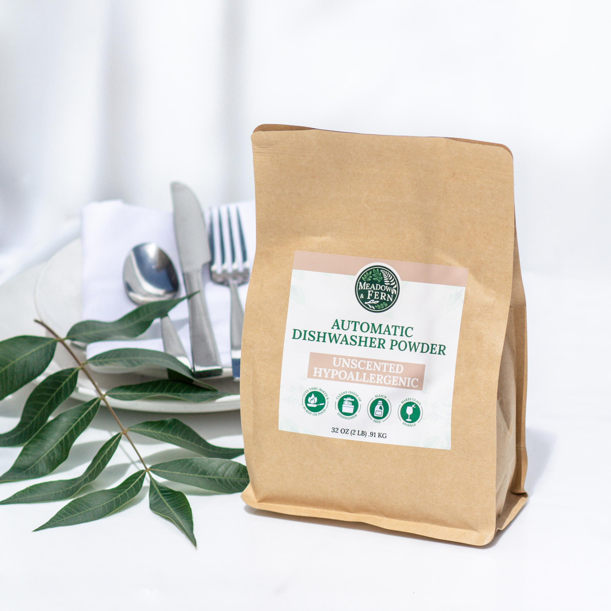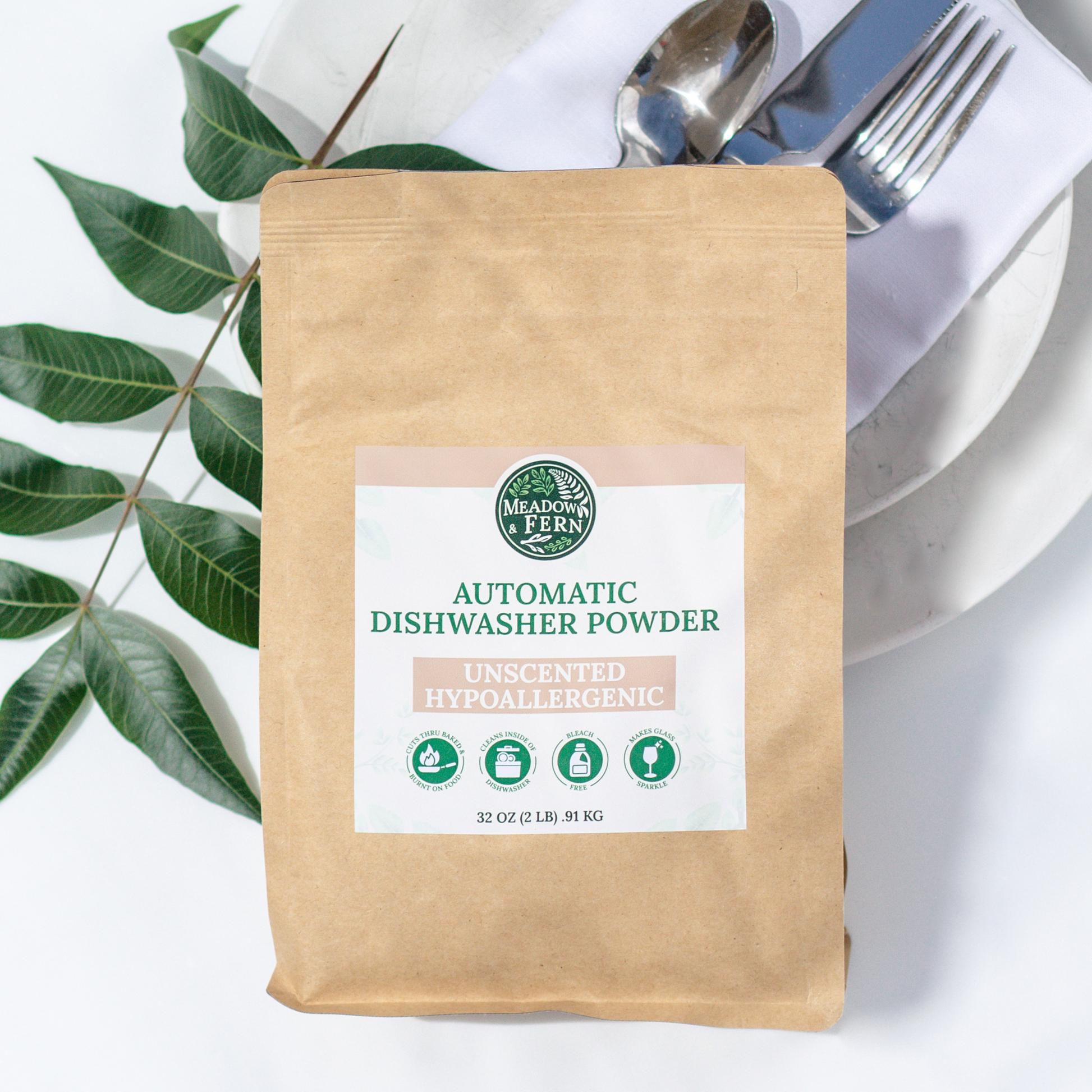 Ditch the toxins and irritants found in most dishwasher detergents. Meadow & Fern’s Automatic Dishwasher Powder is hypoallergenic and free from sodium hypochlorite, hydrozincite, wetting agents, sodium tripolyphosphate, anti-foam agents, fragrances, alcohol alkoxylates, polyacrylates, perfumes, sulfates, parabens, phthalates, 1,4-dioxane, optical brighteners, dyes, fillers, gluten, hormone disruptors, and carcinogens—providing a worry-free clean.