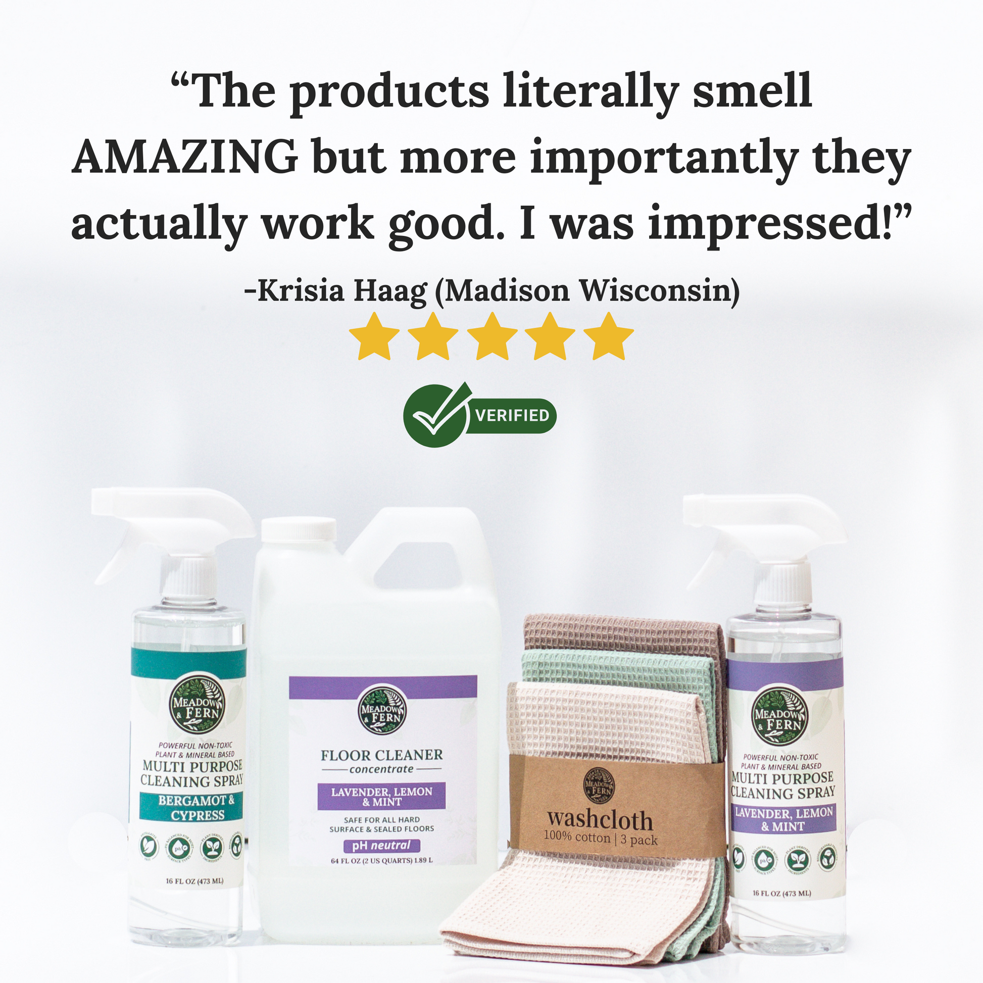 "Meadow & Fern products not only work great, but they smell amazing!!! It gives me peace of mind knowing they're non-toxic and safe for my family. I love not having to stress about harsh chemicals and just enjoying a clean I can feel good about!"