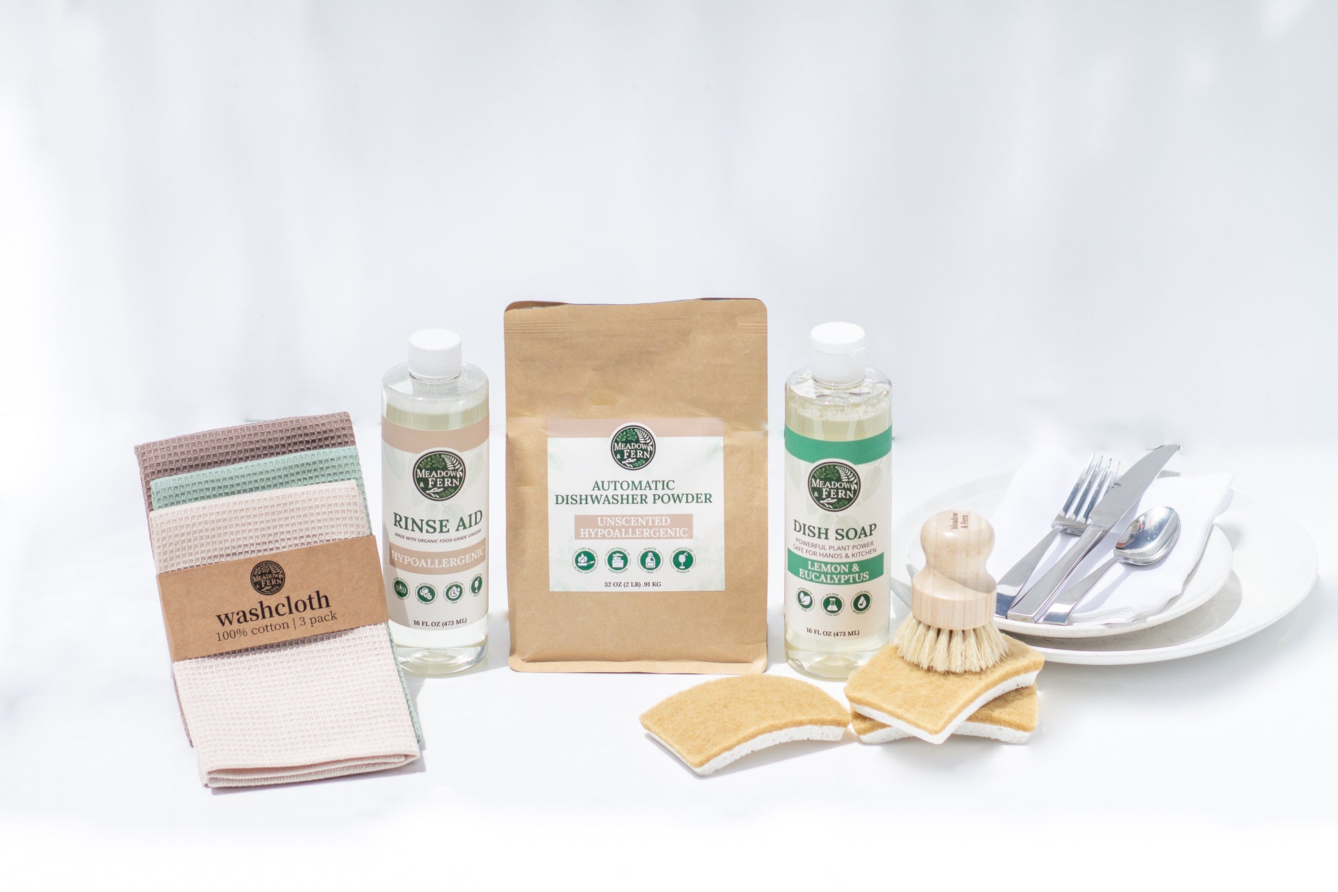 Get started with a cleaner, greener kitchen using our Non-toxic plant based dish starter kit. Thoughtfully curated for you to tackle dirty dishes without harmful chemicals or synthetic fragrances